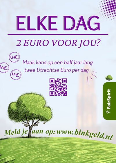 Binkgeld maakt een begin met zo’n mini-basisinkomen. Uit alle aanmeldingen worden willekeurig drie deelnemers gekozen door middel van loting. Zij ontvangen een half jaar lang elke dag 2 Utrechtse Euro.